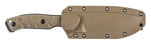 Das CFK 4 Camp & Field Knife wurde für den harten Einsatz entwickelt und verfügt über eine durchgehende Klinge und ein Drop-Point-Profil mit Hohlschliff. Die FRN-Schalen können entfernt und der Griff vom Benutzer mit Paracord umwickelt werden, wenn dies für mehr Vielseitigkeit gewünscht wird. Das Messer wird mit einer geformten Scheide geliefert. Entworfen in Zusammenarbeit mit Gingrich Tactical Innovations.