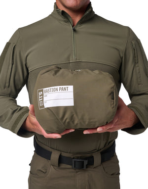 Die Bastion Hose hat einen geformten Bund mit hoher Rückenpartie und breiten Klett- und Druckknopf-Gürtelschlaufen, die gross genug sind, um Dienstgürtel zu tragen. Reissverschluss am Hosenschlitz mit Druckknopfverschluss und Einschubtaschen mit Reissverschluss auf der Rückseite.
